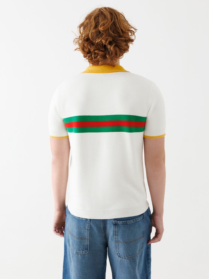Стильный трикотажный джемпер-polo в ретро-стиле добавит ярких акцентов в повседневный образ.