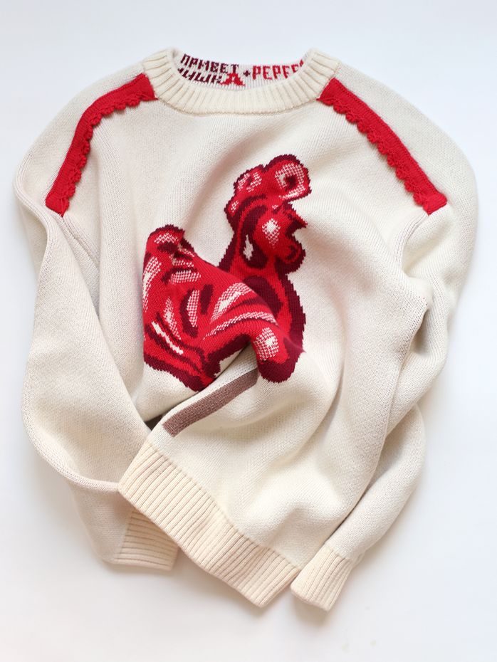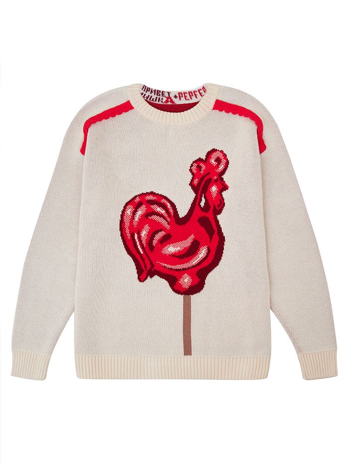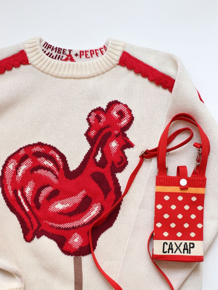 Джемпер трикотажный "Петушок на палочке" из новой премиальной линейки для взрослых, создан в дружной коллаборации Привет Мишка и Pepfer.