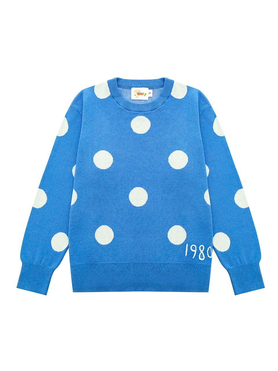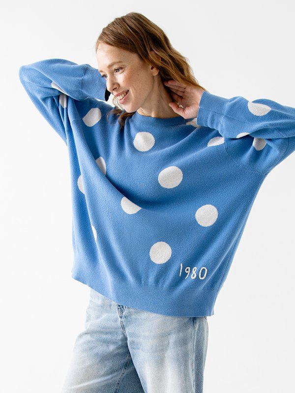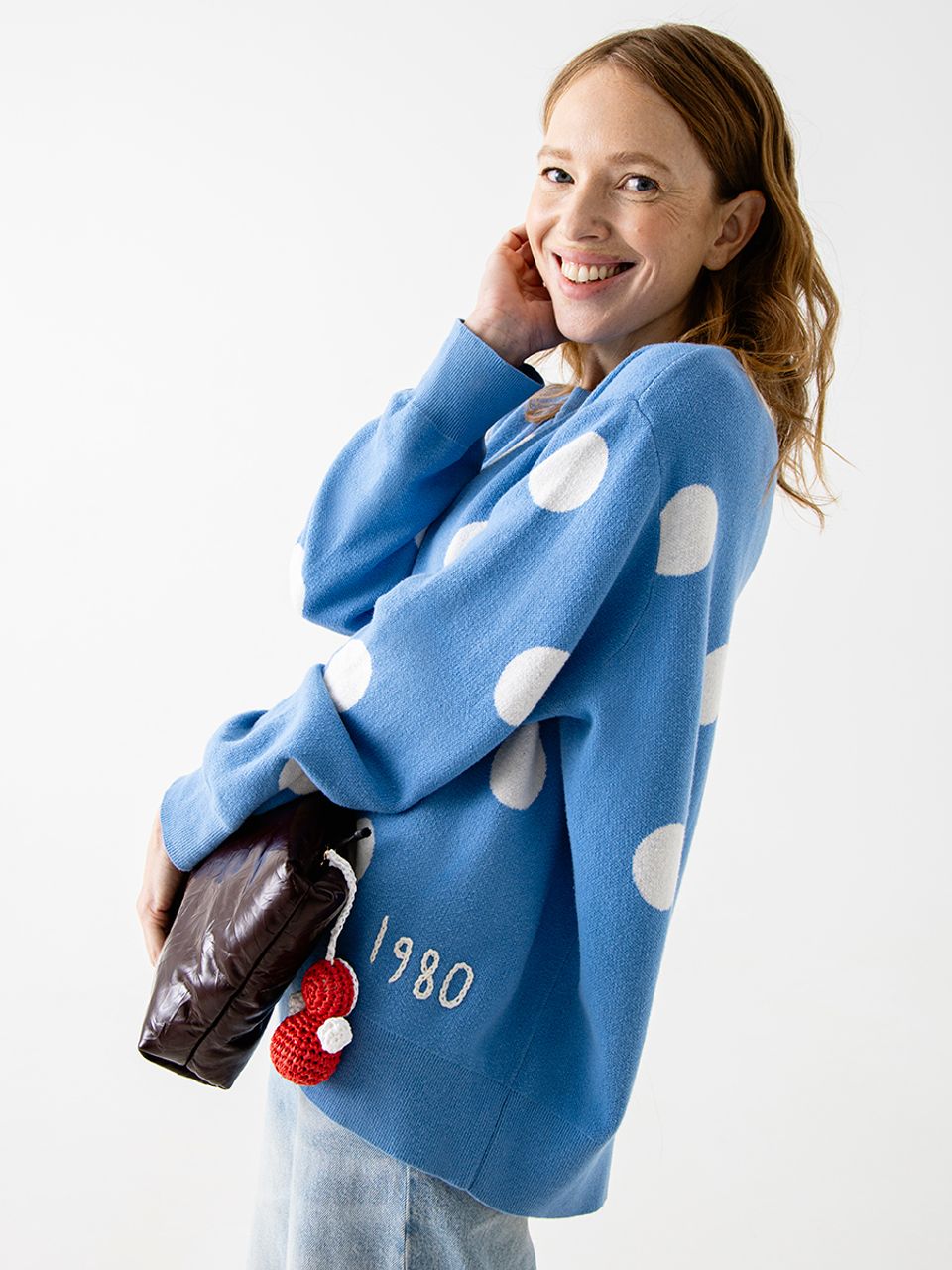 Вязаный джемпер голубого цвета в горох от бренда Привет Мишка - это стильное и комфортное решение для тех, кто ценит индивидуальность. Модель выполнена из мягкого хлопка с гладкой фактурой, что обеспечивает приятные тактильные ощущения.