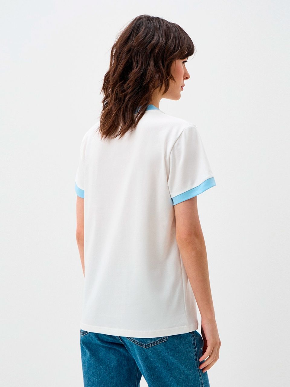 Футболка в винтажном стиле с текстом и контрастной окантовкой выполнена из высококачественного мягкого трикотажного полотна (95% хлопок, 5% эластан).