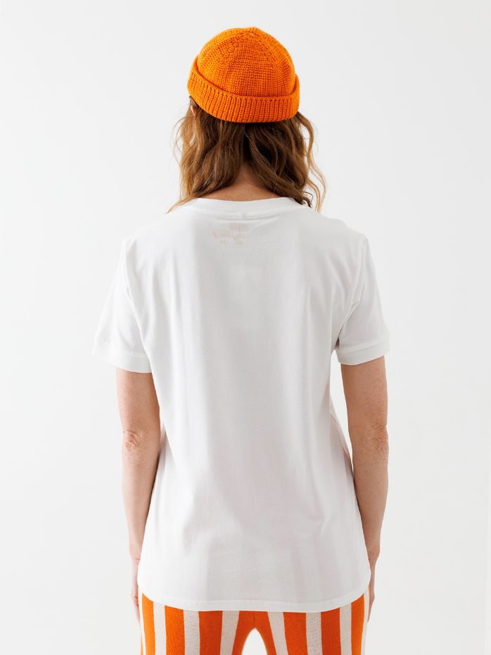 Футболка в ретро стиле с надписью и изображением радуги в стиле Бохо выполнена из высококачественного мягкого белого полотна, содержащего 95% хлопка и 5% эластана.