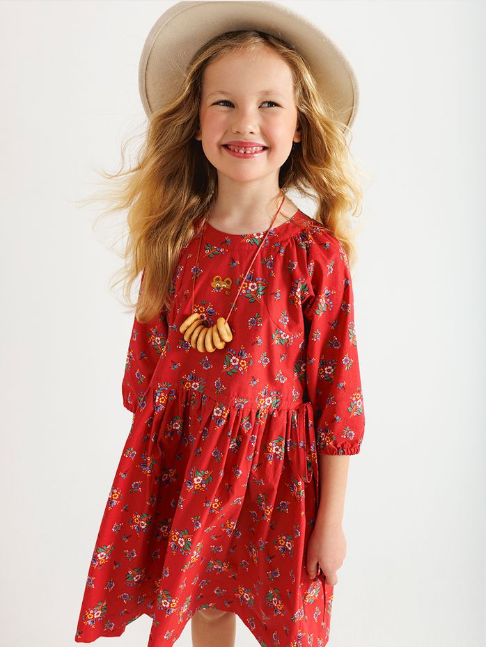 Платье "Шуя красная" от "Привет мишка" чудесным образом телепортирует в детство с его летними поездками в деревню к бабушке. Оно идеально подойдет для теплых и жарких дней, станет незаменимой вещью в детском гардеробе.