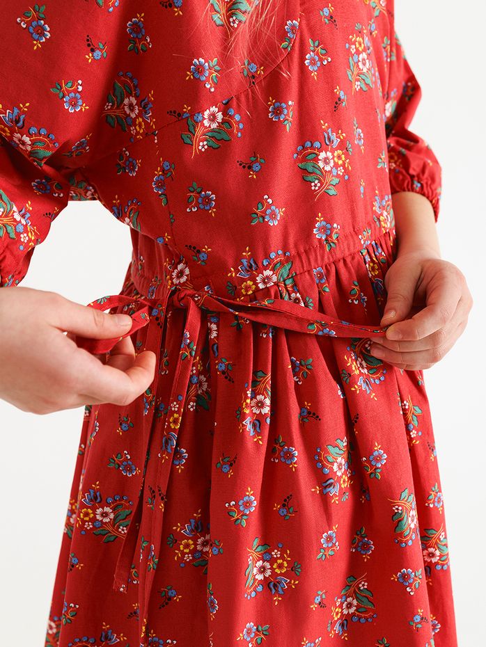 Детское платье в цветочек на крестьянский манер выполнено из 100% хлопка, который комфортен для тела.