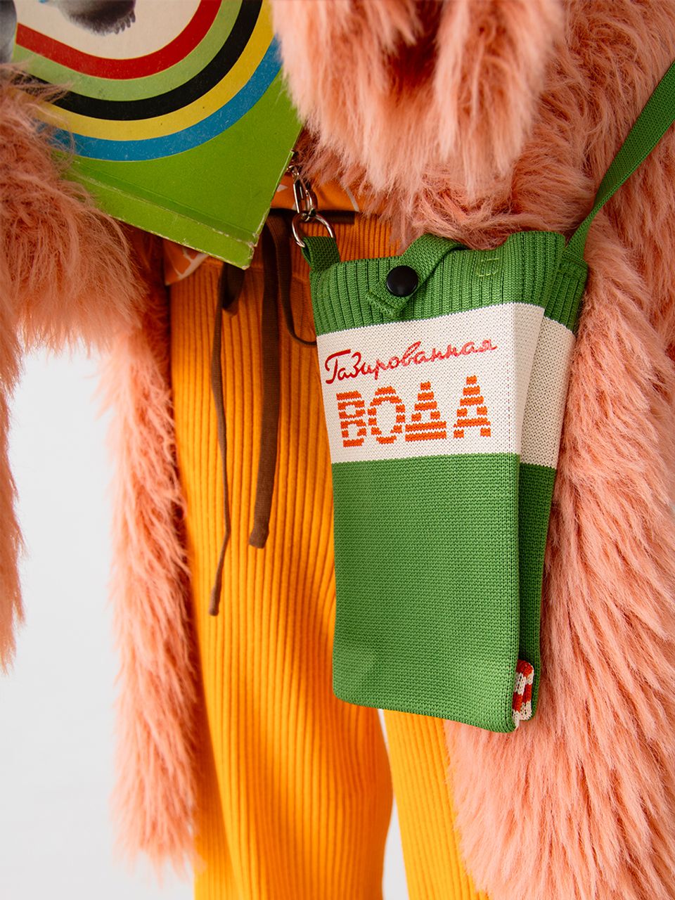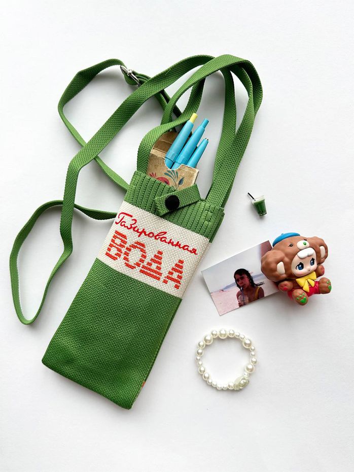 Маленькая сумочка для телефона и мелочей с ностальгическим настроением, вывязана из плотного полиэстера в жаккардовой технике, дополнена принтом, устойчива к истиранию и деформации. Длина ручки регулируется, максимальная 110 см.
