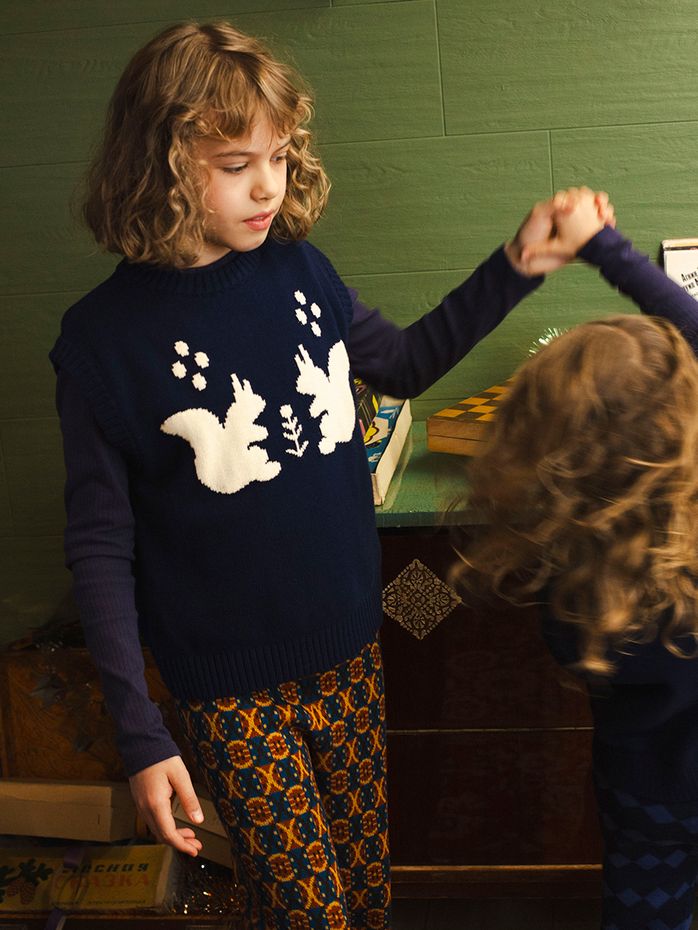 Жилет вязаный со свободной посадкой "Белочки" может стать идеальным выбором для учебы, для школы, на утренник, прогулок и любых других случаев.