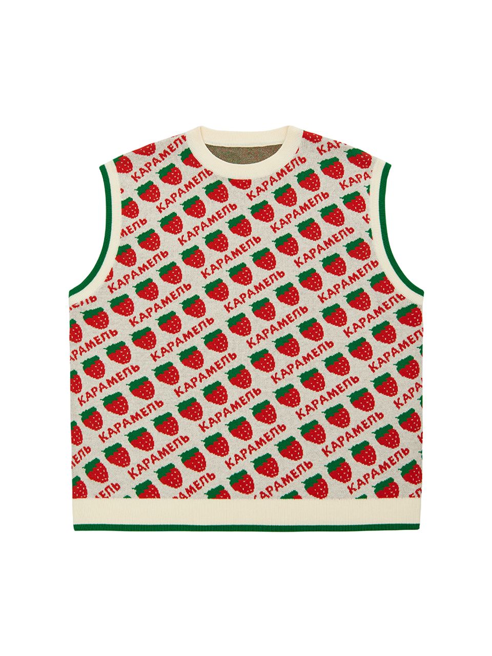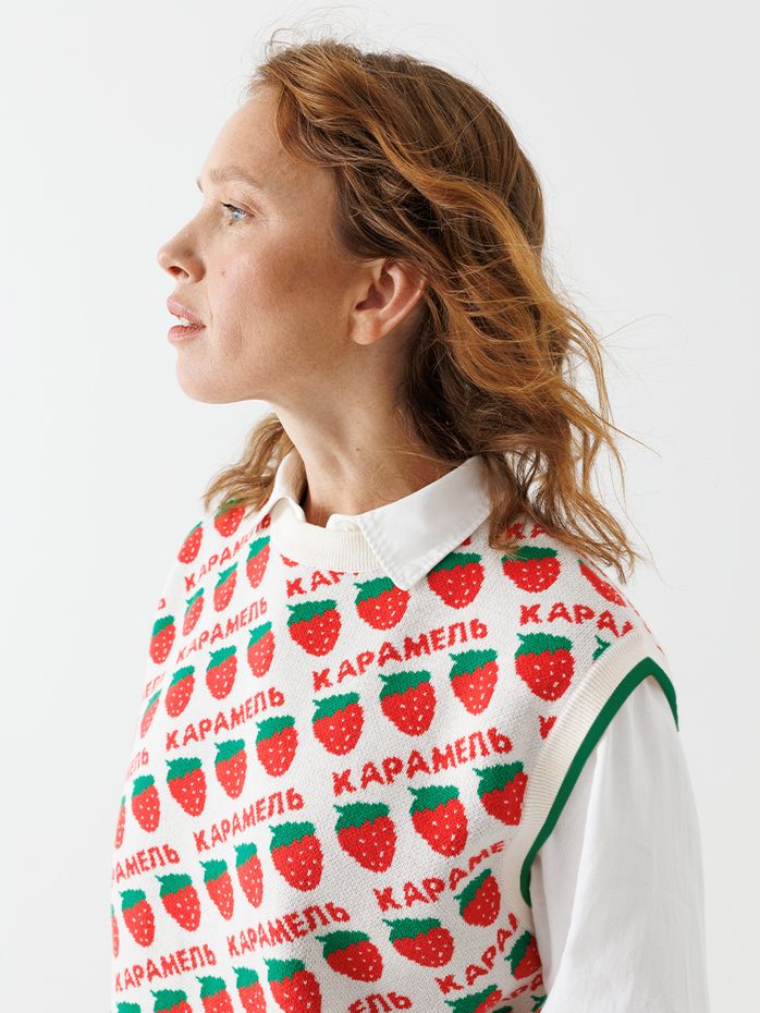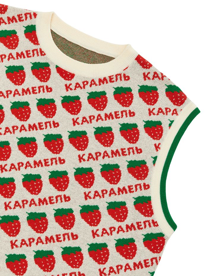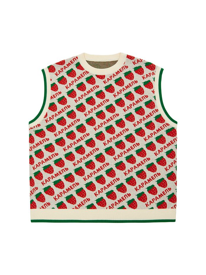 Жилет вязаный со свободной посадкой с паттерном Клубника может стать идеальным выбором как для повседневной носки, так и для особых случаев.